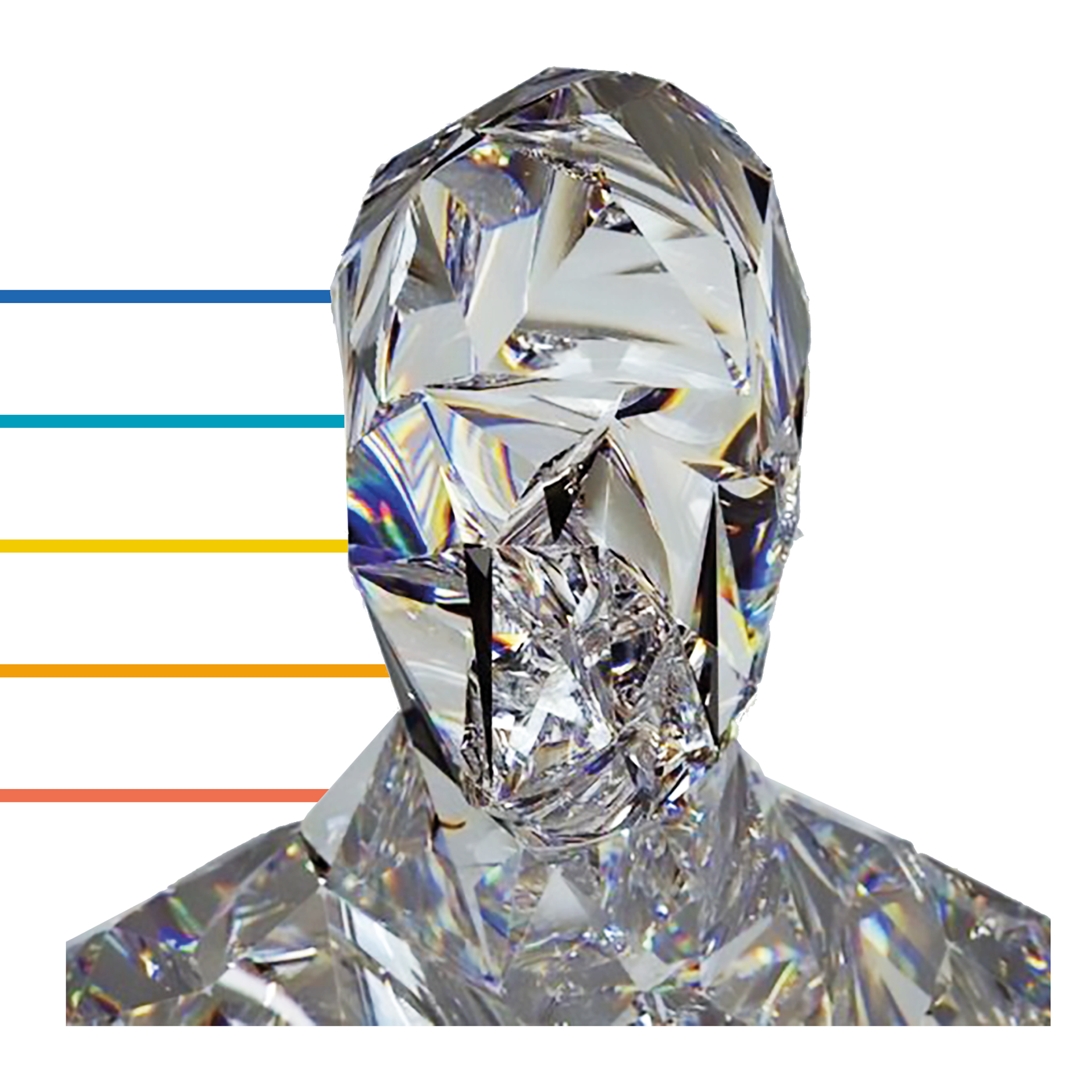 I worked in Rhino to make the basic shapes, "cutting" them as I would do with real crystals. In doing so, I obtained crystals and prisms that accentuate the dichroic effect of the material, designed with nodes on KeyShot.