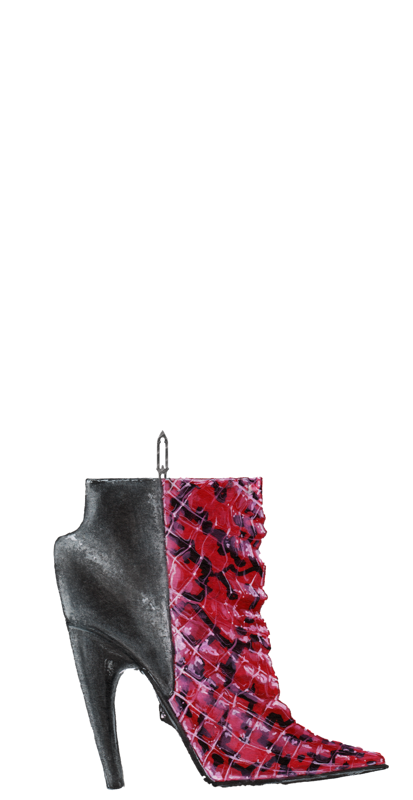 Ho cercato di catturare il tema del martirio, del diabolico, attraverso l'uso di pelli di serpenti e coccodrilli affiancate a pelli più morbide e "pure" d'agnello, che oltre a creare contrasto di superfici, ne genera uno di significati.